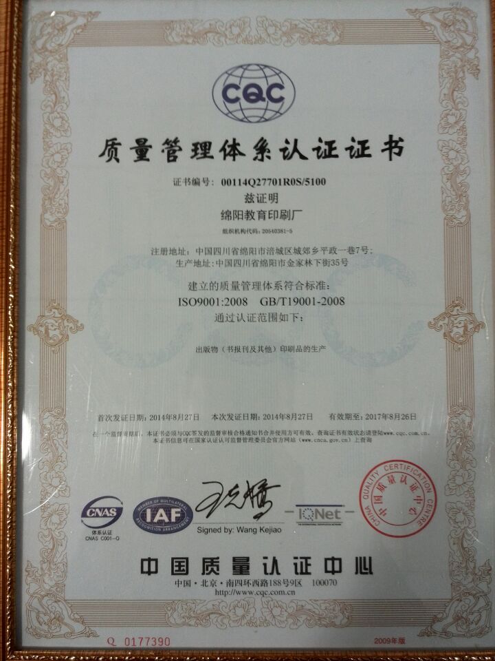 教育ISO9001认证证书